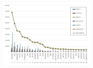[더페어] 이정훈 기자 = 식품 상장기업 브랜드평판 2025년 11월 빅데이터 분석결과, 1위 삼양식품 2위 농심 3위 CJ제일제당 순으로 분석됐다.한국기업평판연구소는 식품 상장기업 60개 브랜드에 대해 2025년 10월 18일부터 2025년 11월 18일까지의 식품 상장기업 브랜드 빅데이터 50,975,662개를 분석한 결과 지난 10월 식품 상장기업 브랜드 빅데이터 54,571,385개와 비교하면 6.59% 줄어들었다고 밝혔다.2025년 11월 식품 상장기업 브랜드평판 30위 순위는 삼양식품, 농심, CJ제일제당, 오리온, 오뚜