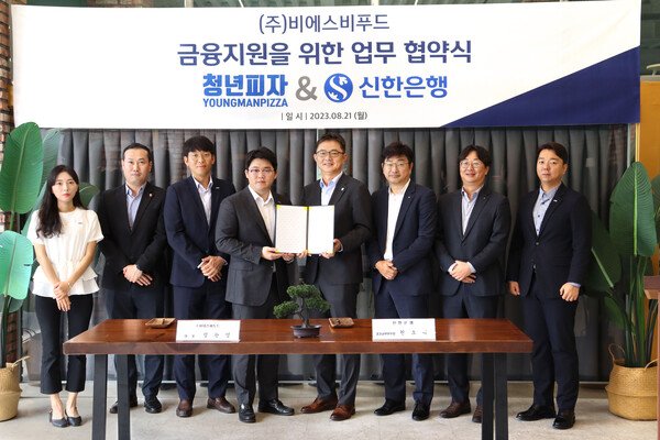 [더페어] 이강훈 기자=국내 프랜차이즈 피자브랜드 청년피자(대표 정관영)는 21일 청년피자 가맹본부에서 신한은행과 업무협약을 맺고 가맹점주를 지원하는 ‘프랜차이즈론’을 실시한다고 24일 밝혔다.