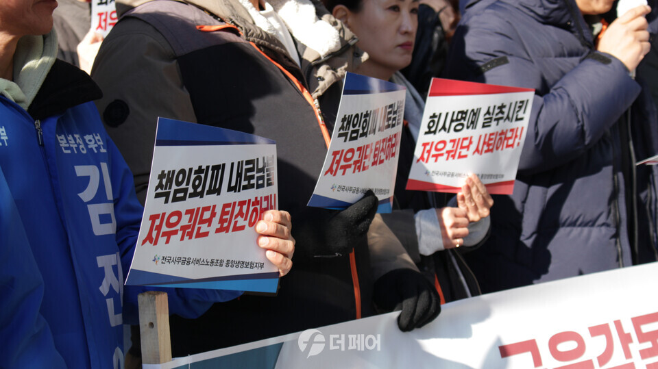 [더페어] 이용훈 기자=동양생명 저우궈단 대표이사의 퇴진을 지속적으로 요구해왔던 전국사무금융노조 동양생명지부(이하 동양생명 노조)가 2차 집회를 열었다.