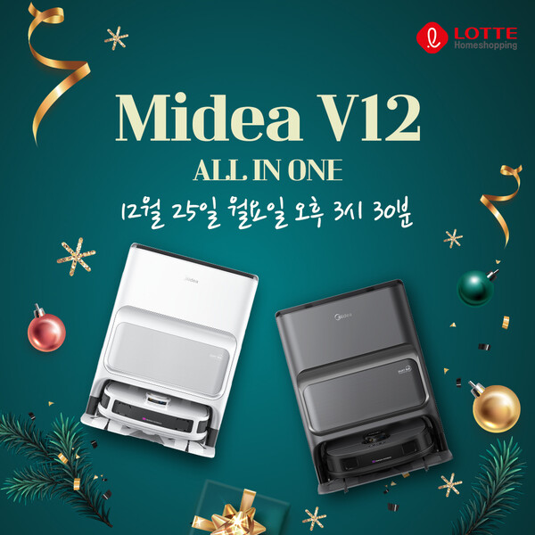[더페어] 손호준 기자=스마트 가전 선두 기업 미디어(Midea)의 최신형 모델 ‘미디어 V12 올인원 로봇청소기’가 크리스마스를 맞이해서 12월 25일 월요일 오후 3시 30분에 롯데홈쇼핑에서 크리스마스 특별전을 진행한다고 전했다.
