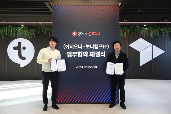 [더페어] 손호준 기자=테이블오더 플랫폼 (주)티오더(대표 권성택)는 바이오스마트 그룹 계열사인 보나캠프 주식회사(대표 강기성)와 주류 유통사와 매장, 그리고 소비자를 연결하는 B2B2C 형태의 주류 스마트오더 서비스를 위한 파트너십을 지난 22일 서울시 영등포구 티오더 본사에서 체결했다고 26일 밝혔다.