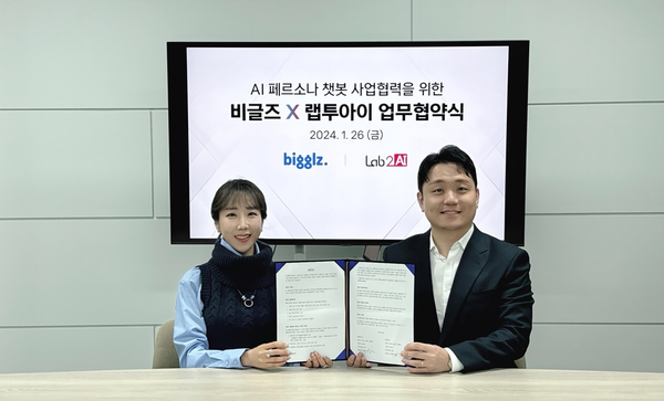 [더페어] 손호준 기자=㈜비글즈(대표이사 이희정)는 ㈜랩투아이(대표이사 오종환)와 AI 페르소나 챗봇 사업 협력에 관한 MOU를 체결했다고 26일 밝혔다.