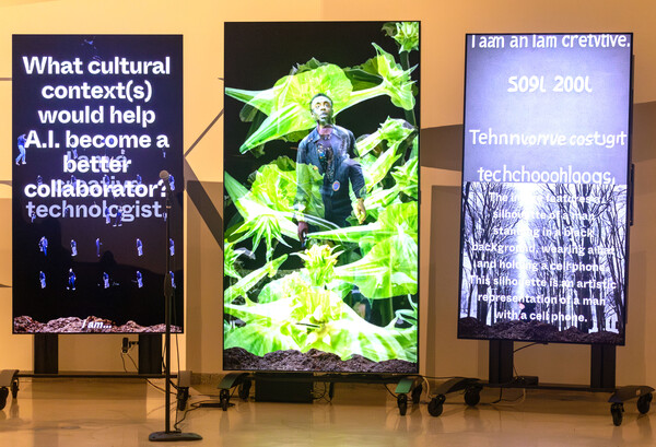 [더페어] 박희만 기자=지난 25일(현지시간) 미국 뉴욕 구겐하임 미술관에서 열린 'Late Shift x 스테파니 딘킨스' 전시에서 인간과 인공지능 기술 사이의 소통과 공감을 담은 예술 작품을 올레드 TV로 선보였다.