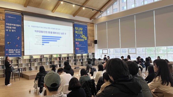[더페어] 노만영 기자=블록체인·핀테크 기업 두나무가 자립준비청년 지원사업인 '두나무 넥스트 JOB(이하 넥스트 잡)'의 성과와 향후 방향성을 공유하는 토크콘서트를 개최했다고 28일 밝혔다.