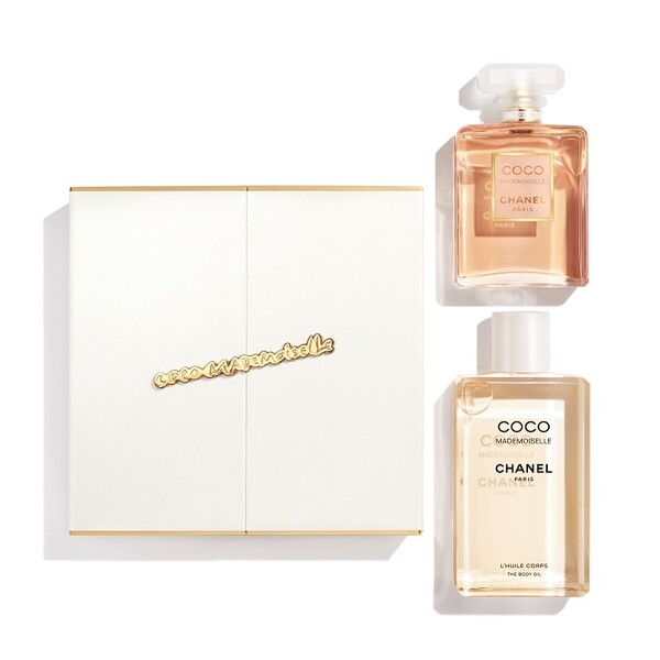 리미티드 아이템으로 출시된 ‘코코 마드모아젤 코프레 세트’는 고급스러운 패키지 속 ‘코코 마드모아젤 오 드 빠르펭’과 ‘코코 마드모아젤 바디 오일’로 구성되어 있다. 감각적인 골드 컬러의 코코 마드모아젤 레터링 장식이 특히 시선을 사로잡는다.