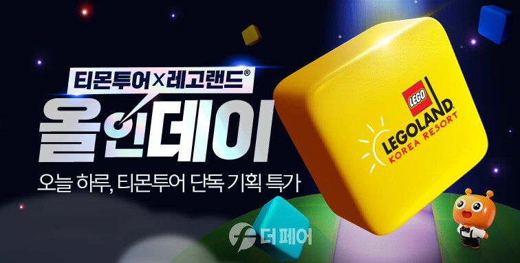 5일 하루 ‘티몬투어X레고랜드 코리아 리조트(이하 레고랜드)’ 올인데이도 연다. 7월 21일까지 여유롭게 투숙할 수 있는 ▲레고랜드 호텔 멀린마법사 망토+조식 패키지를 최대 84% 할인한 단독 특가에 선보이며, 객실 최대 정원까지 추가 비용 없이 머무를 수 있는 혜택도 제공한다. 가족 나들이 명소 ▲레고랜드 파크 1일 입장권(주중 소인 기준)은 최대 23% 할인, 단일 티켓뿐 아니라 3·4인권 구성도 특가에 내놓는다. 오는 5일 오전 10시부터 ‘티몬플레이’ 라방을 진행하고 생생한 쇼핑정보와 이벤트까지 전할 예정이다.