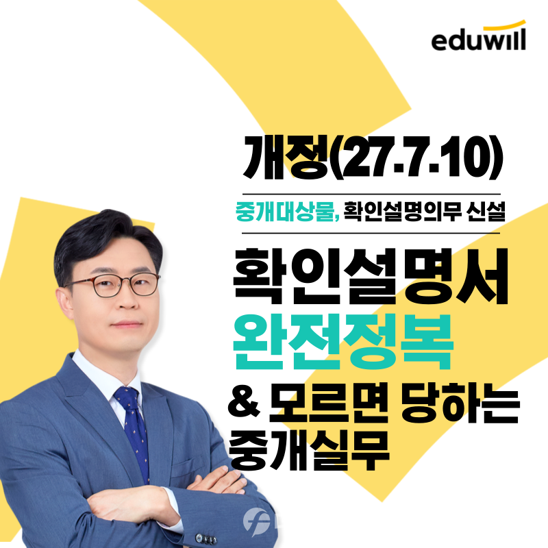[더페어] 안해연 기자=종합교육기업 에듀윌이 오는 25일, 오전 10시부터 5시까지 ‘확인설명서 완전 정복 및 모르면 당하는 중개실무’ 일일 특강을 진행하고, 수강생을 모집한다고 8일 밝혔다.