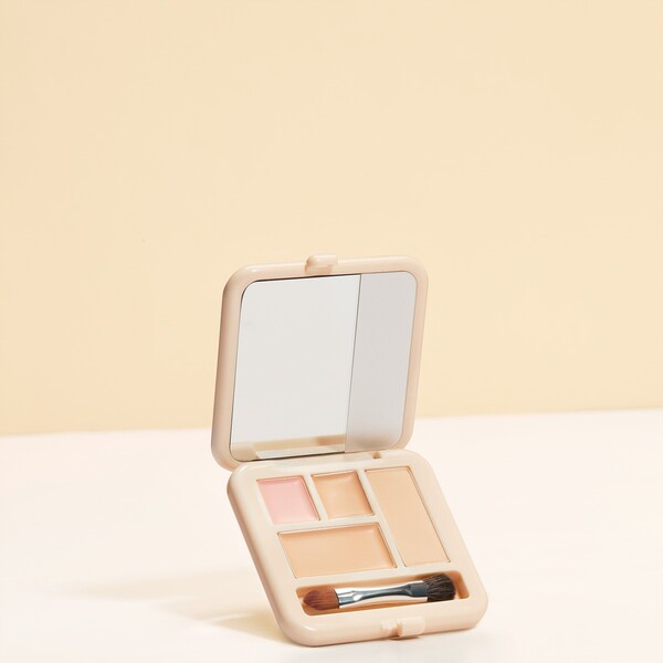 팔레트에 포함된 컨실러 제형은 총 3가지로, 다크서클과 톤업 믹스용으로 사용할 수 있는 핑크톤 브라이트너와 크리미한 제형으로 화사하게 넓은 부위 커버가 가능한 라이트 커버, 국소 부위 커버용으로 딱풀 제형인 차분한 색상의 미디엄 커버이다.