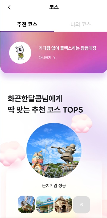 달콤한 솜사탕을 연상시키는 동화적 디자인 요소를 반영하고 고객이 파크 경험에 집중할 수 있도록 다양한 기능을 직관적인 인터페이스로 구성해 고객 편의를 향상시켰다.