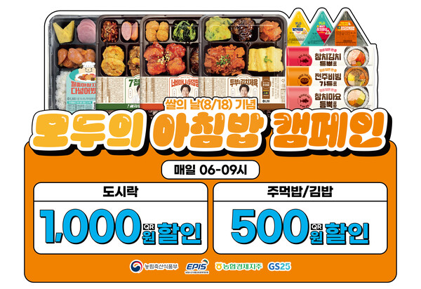 GS리테일이 운영하는 편의점 GS25가 농림축산식품부(이하 농식품부)와 손잡고 8월 19일부터 9월 8일까지 약 3주간 ‘모두의 아침밥’ 타임세일 캠페인(이하 캠페인)을 진행한다고 18일 밝혔다.