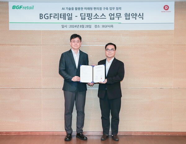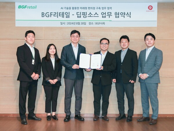 이달 28일 열린 협약식에는 BGF리테일 신종하 경영기획실장, 딥핑소스 김태훈 대표 등과 관련 실무진이 함께 참석했다.