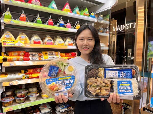 GS리테일이 운영하는 편의점 GS25가 종합식품기업 팔도와 손잡고 팔도비빔장을 활용한 간편식 3종(▲팔도 삼겹구이한판 도시락 ▲팔도 우삼겹주먹밥 ▲팔도 비빔국수&왕교자)을 25일 출시했다.