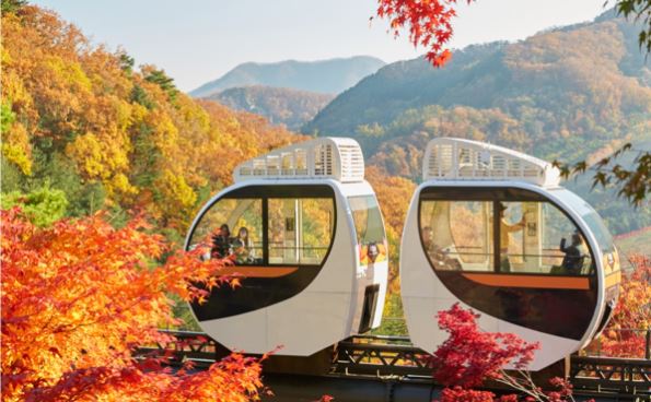 경기도 광주에 위치한 화담숲은 모노레일을 따라 붉타오르는 단풍의 향연을 즐길 수 있다.
