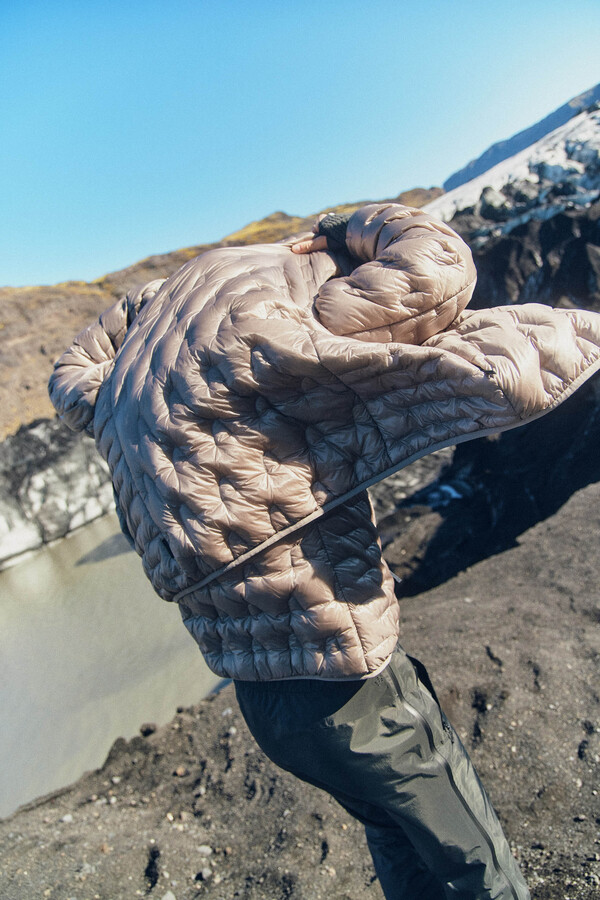 옆구리 쪽 측면에는 수분에 강한 ‘네스트 충전재’를 실타래 형태로 배치한 드라이 다운과 네스트 충전재의 하이브리드 설계로 활동성과 보온성을 업그레이드했다.