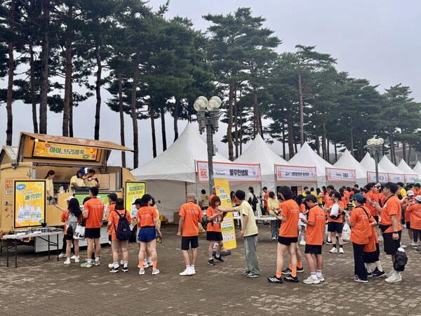 또한, 브리지톡 음료와 함께한 인증샷 이벤트 참가자에게는 현장에서 브리지톡으로 만든 에이드 3종을 선보여 큰 인기를 얻었다. 행사 참여자 전원에게는 풀무원샘물 500mL 생수가 제공되었고, 완주자에게는 신제품 ‘하루귀리’가 포함된 간식 박스가 증정돼 좋은 반응을 이끌었다.